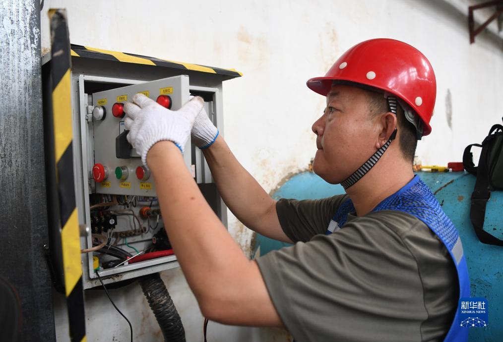 8月8日,工作人員在涿州市城區地表水廠(chǎng)設備間搶修受損設備。