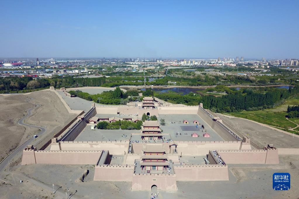 這是8月7日拍攝的嘉峪關(guān)關(guān)城(無(wú)人機照片)。