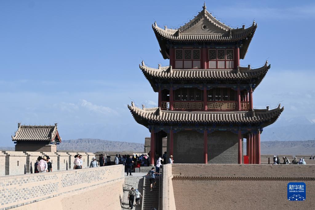 8月7日,游客在嘉峪關(guān)關(guān)城參觀(guān)游覽。