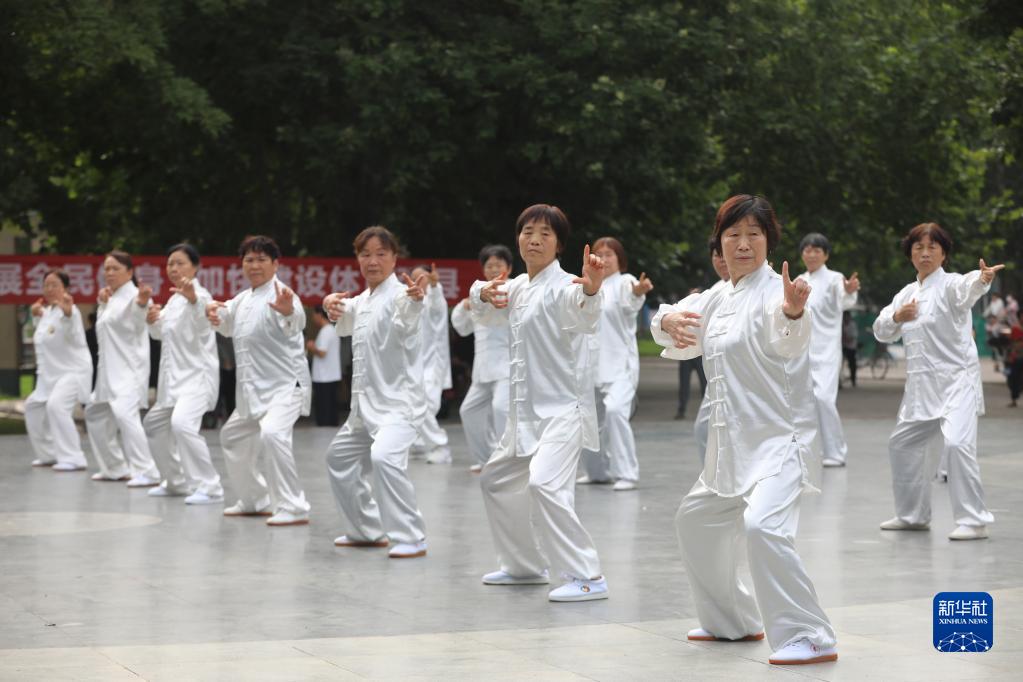 8月8日,在河南省焦作市溫縣太極游園,市民在全民健身日活動(dòng)中表演八段錦。