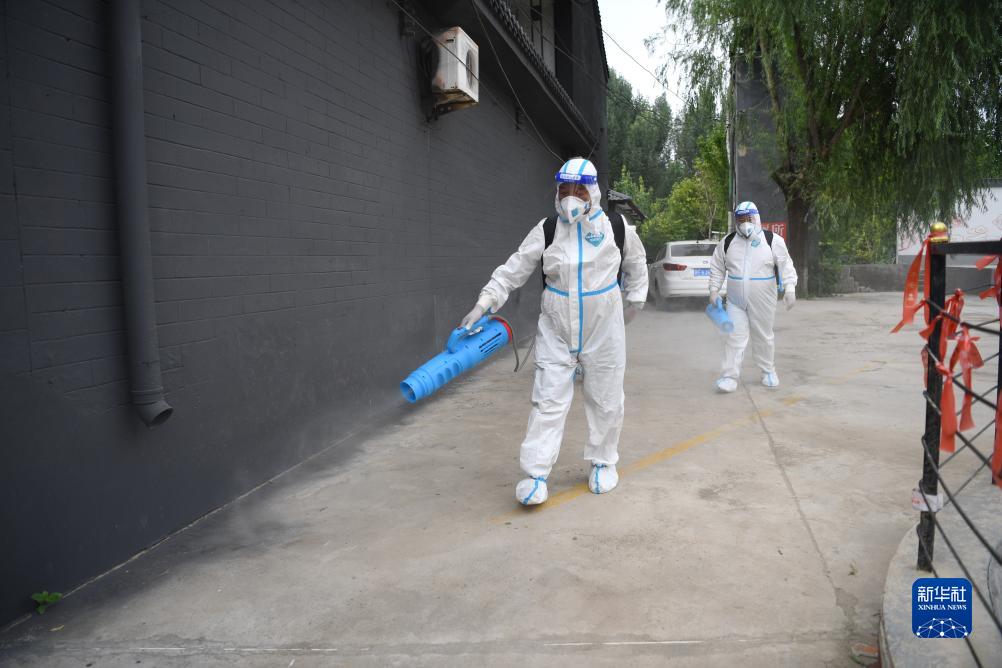 8月8日,工作人員在涿州市桃園街道忠義店村開(kāi)展防疫消殺作業(yè)。