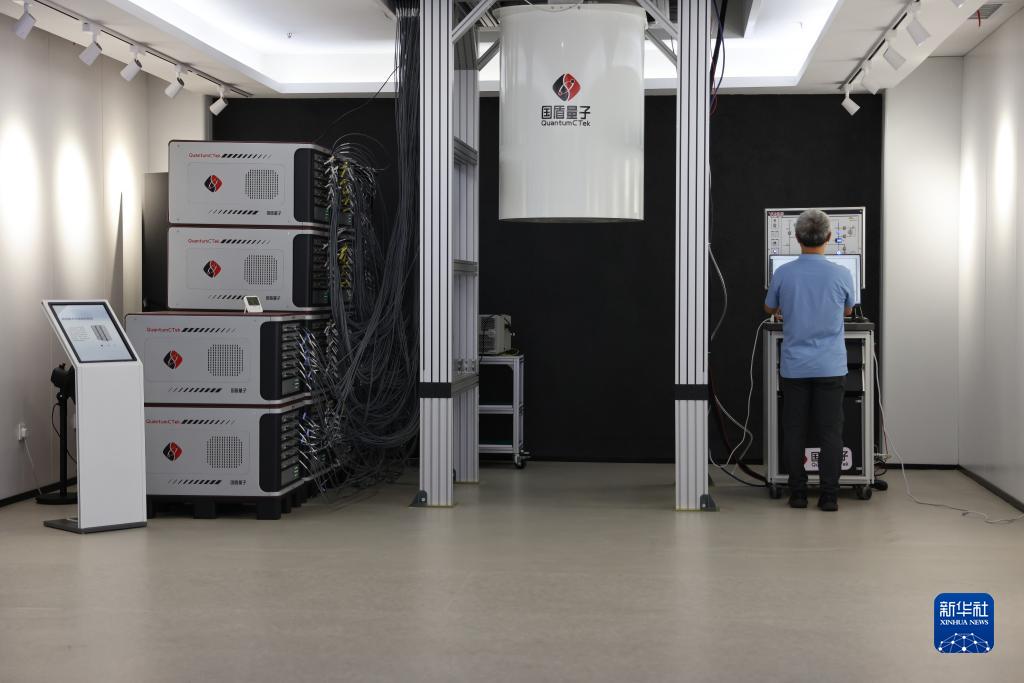 7月21日,彭承志在位于安徽合肥的科大國盾量子技術(shù)有限公司展廳操作“祖沖之二號”。