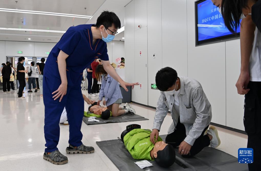 8月8日,天津市第一中心醫院的醫生在健康廣場(chǎng)進(jìn)行急救知識宣教。