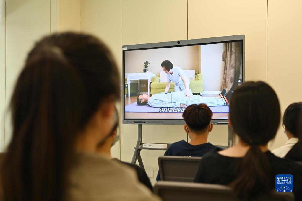 8月8日,人們在天津市第一中心醫院健康廣場(chǎng)觀(guān)看宣教視頻。
