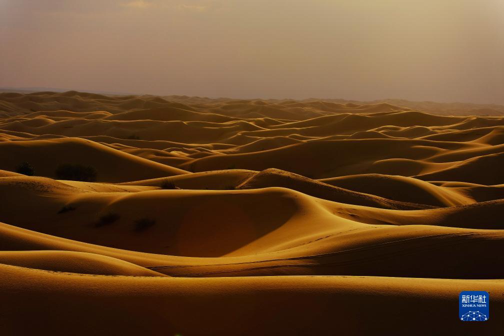 夕陽(yáng)下的庫布其沙漠(8月5日攝)。