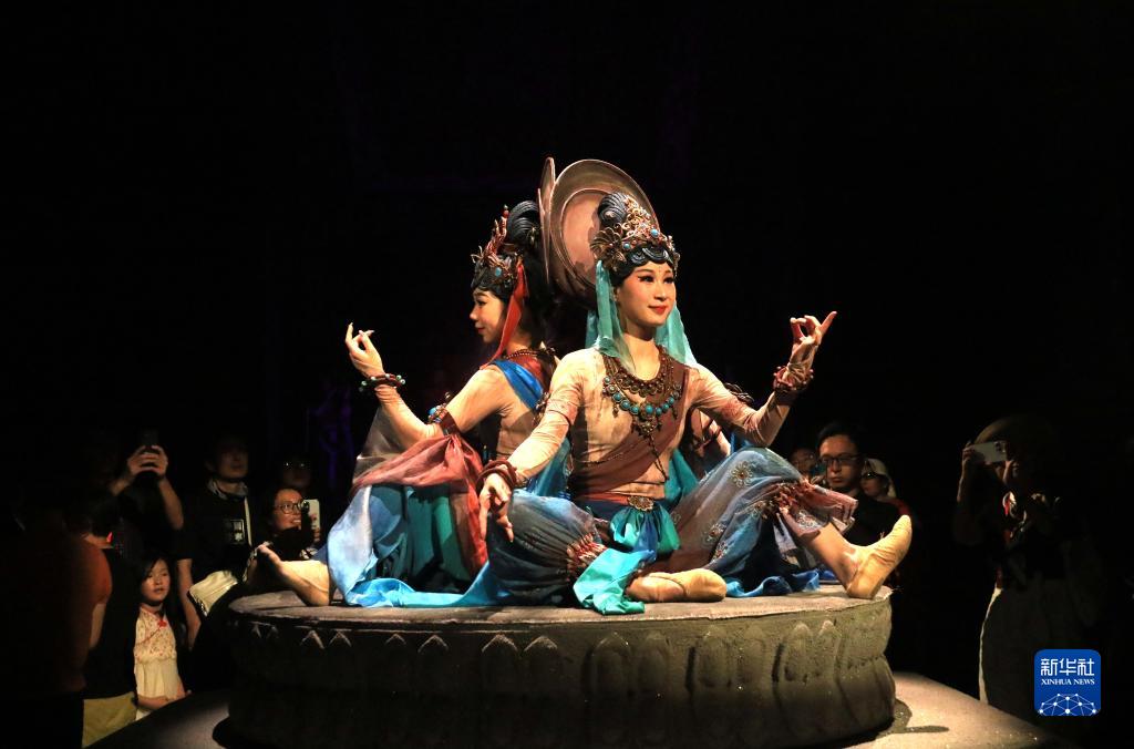 8月5日晚,游客在甘肅省敦煌市觀(guān)看大型洞窟式沉浸體驗劇《樂(lè )動(dòng)敦煌》。