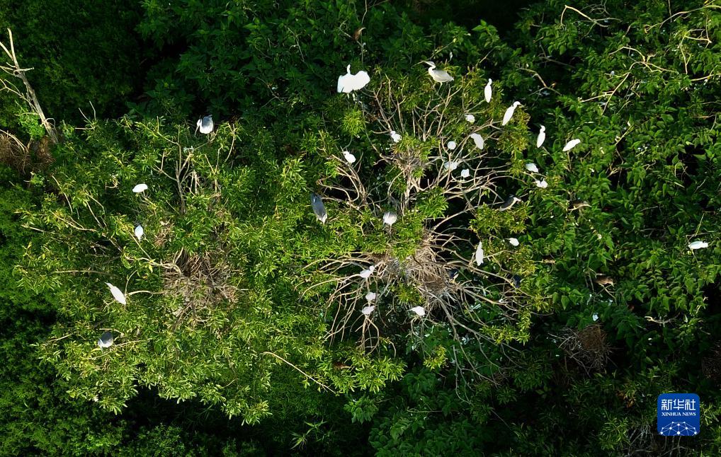 今年入夏以來(lái),大量蒼鷺、白鷺等野生鳥(niǎo)類(lèi)在山東省成武縣的文亭湖濕地內棲息。