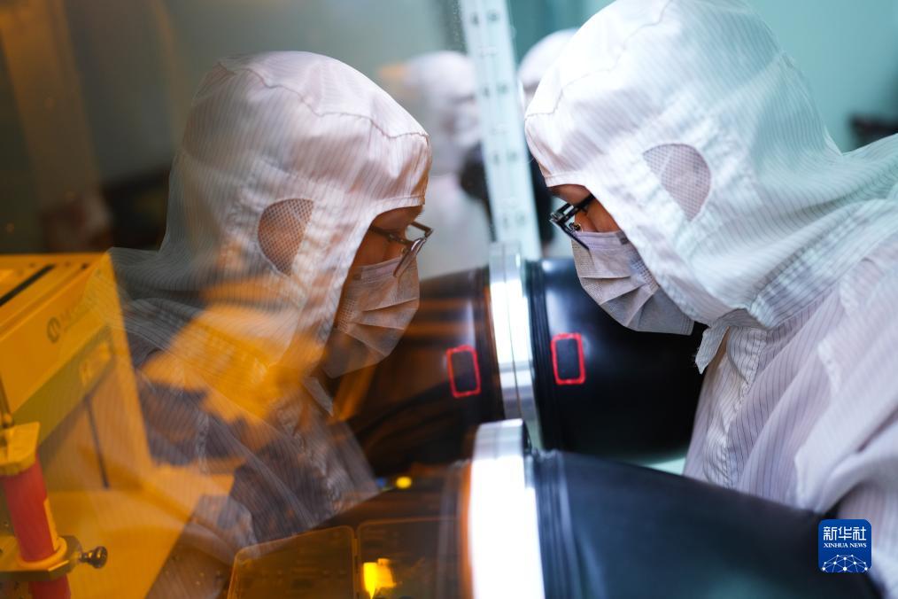 8月9日,在臺州市黃巖區浙江光昊光電科技有限公司,工作人員在手套箱內封裝OLED有機發(fā)光半導體器件。