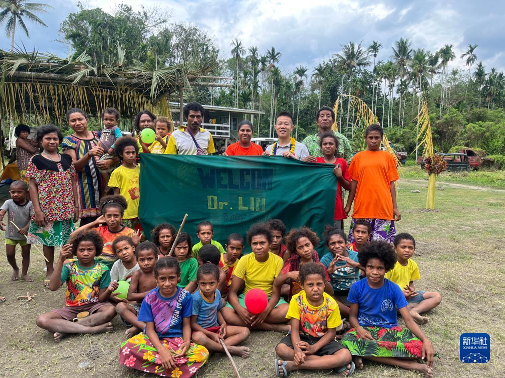 8月5日,在巴布亞新幾內亞中央省的一個(gè)村莊里,當地村民歡迎第12批援巴新中國醫療隊隊員。