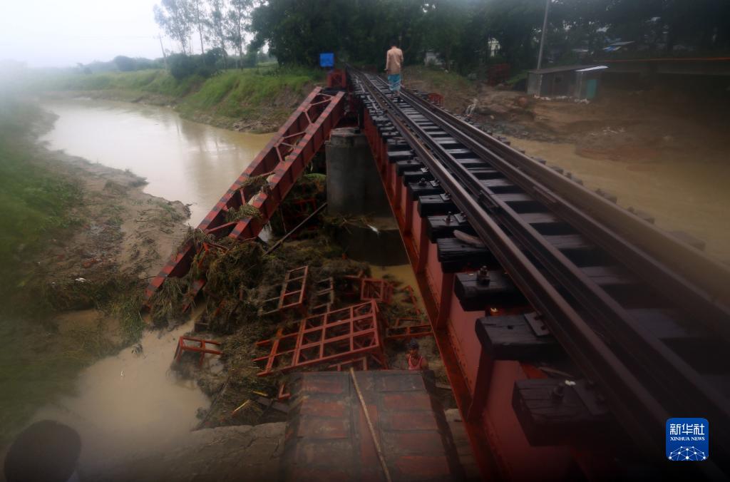 8月8日,在孟加拉國吉大港,鐵路被洪水沖毀。