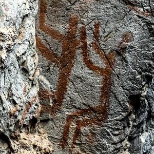 巖畫(huà)中的人物以一種平涂剪影式的方法繪制而成,筆法古樸粗獷,遠遠望去,仿佛一個(gè)個(gè)“跳舞的小人”。2000多年前的人們用什么方式把圖案繪在數十米高的懸崖絕壁上?什么樣的顏料能夠經(jīng)受住千百年風(fēng)雨的侵蝕?這些鬼斧神工之作的真正含義是什么?