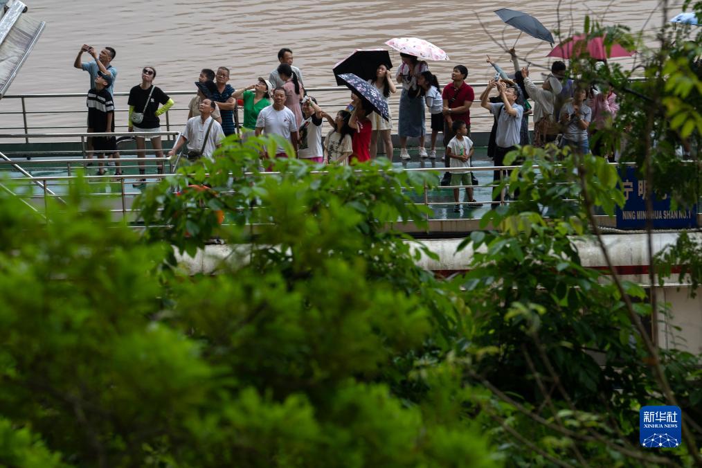8月8日,游客乘船欣賞巖畫(huà)。