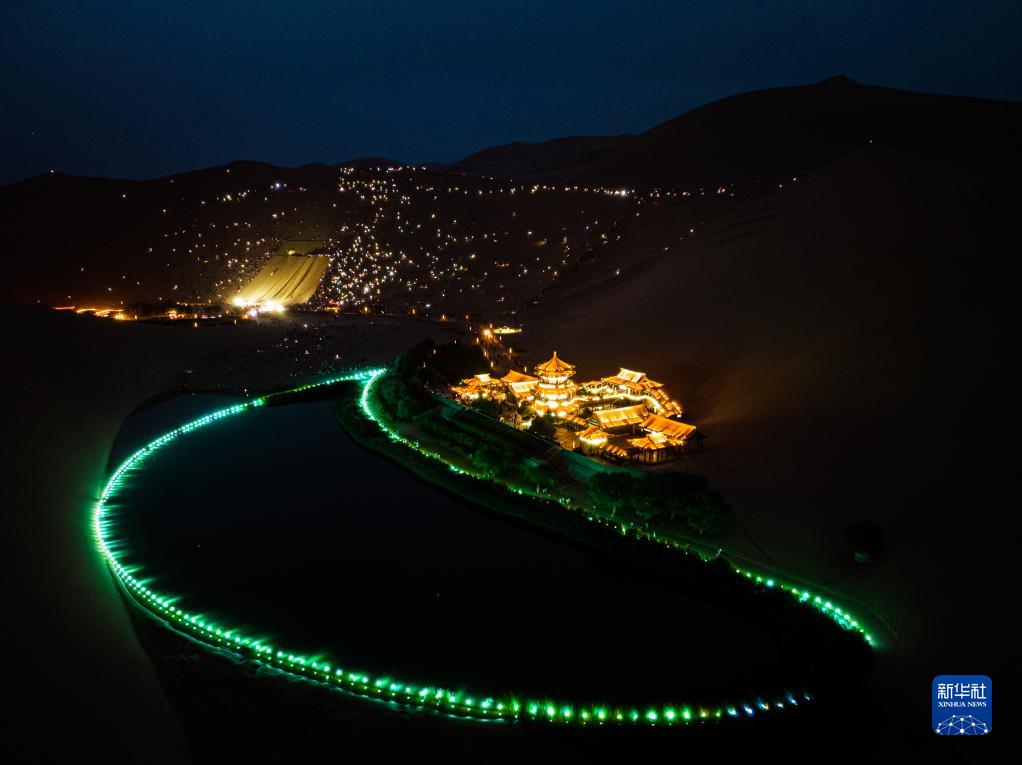 近期,甘肅省敦煌市鳴沙山月牙泉景區迎來(lái)暑期游客高峰。為豐富游客體驗,景區在夜幕降臨后舉行“點(diǎn)亮敦煌——鳴沙山月牙泉沙漠萬(wàn)人演唱會(huì )”活動(dòng)。游客們伴著(zhù)音樂(lè ),揮舞點(diǎn)亮的手機唱歌互動(dòng),遙望夜幕下的月牙泉,感受別樣的景致。