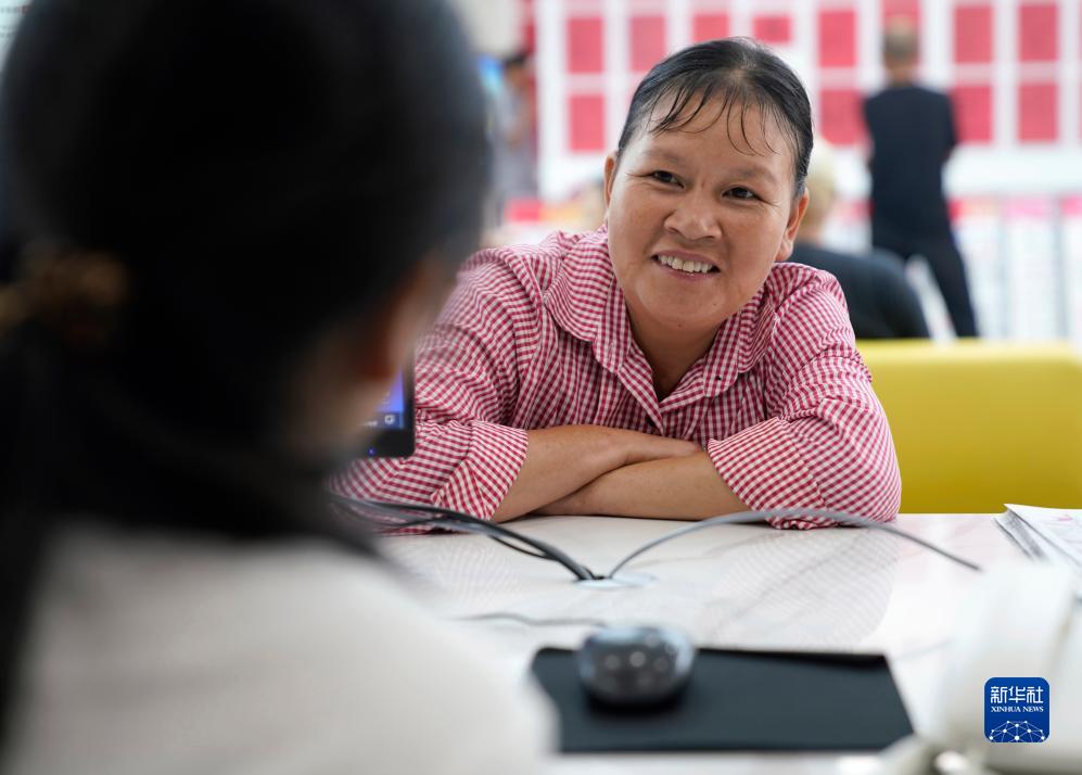 8月9日,求職者在浙江省金華市婺城區零工服務(wù)中心內與工作人員交流。