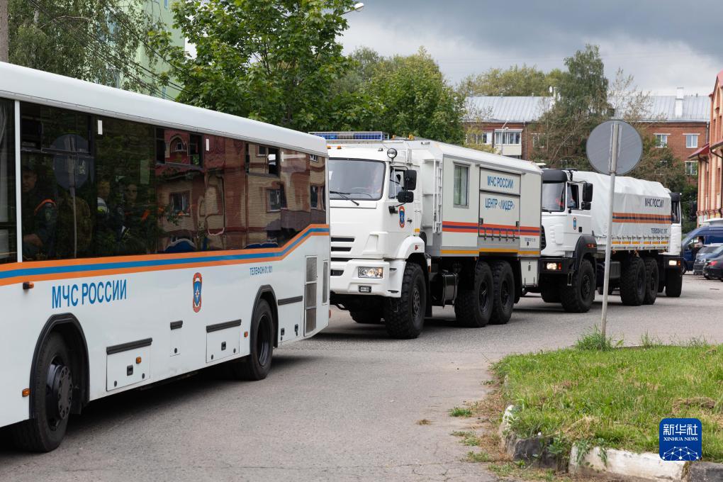 8月9日,在俄羅斯莫斯科州,救援車(chē)輛抵達事發(fā)地點(diǎn)附近。新華社記者 白雪騏 攝