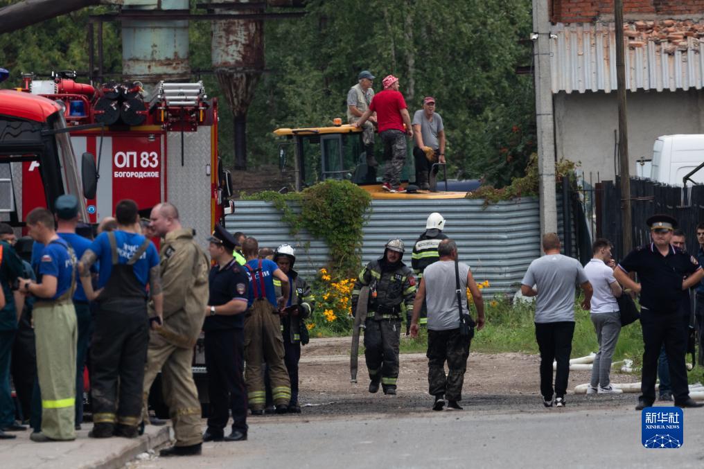 8月9日,在俄羅斯莫斯科州,救援人員在現場(chǎng)工作。新華社記者 白雪騏 攝