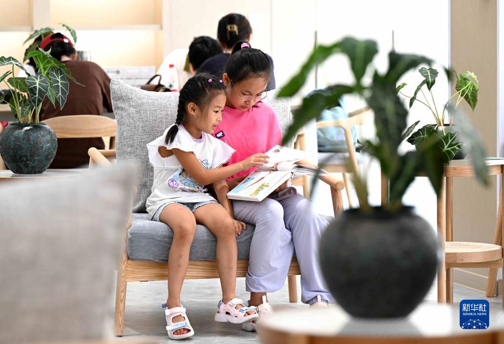8月9日,小朋友在河北省石家莊市鹿泉區龍泉湖公園內一處公園書(shū)房閱讀。