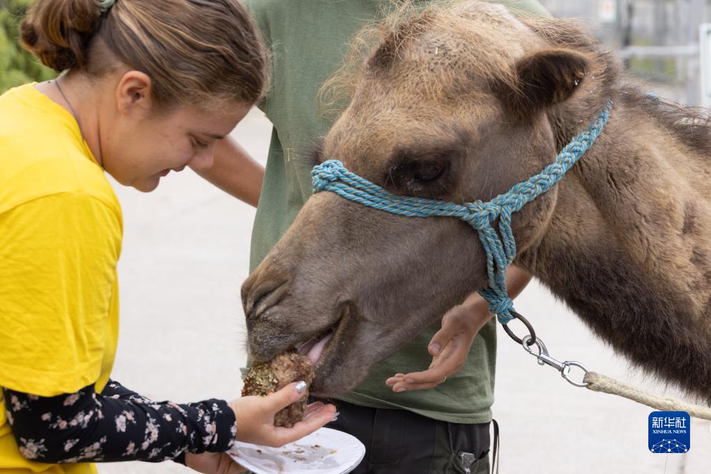 8月9日,在匈牙利布達佩斯動(dòng)物園,駱駝品嘗特制蛋糕。