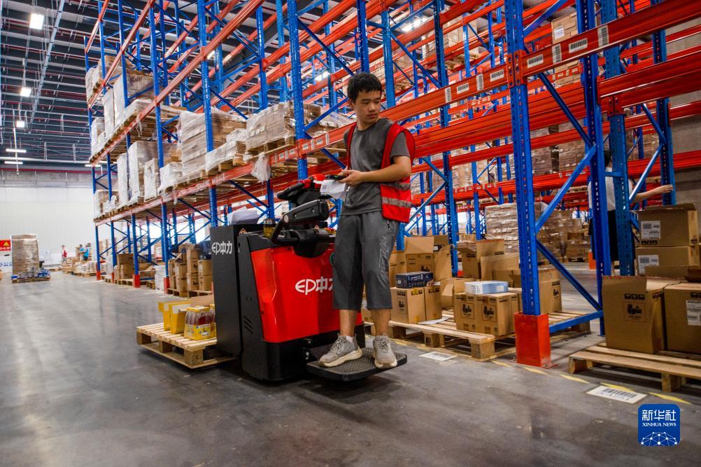 8月10日,在浙江省金華市金義綜合保稅區云倉跨境華東中心倉內,工作人員在發(fā)貨前理貨。