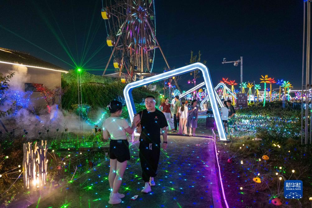 8月10日,游客夜游達人村景區。