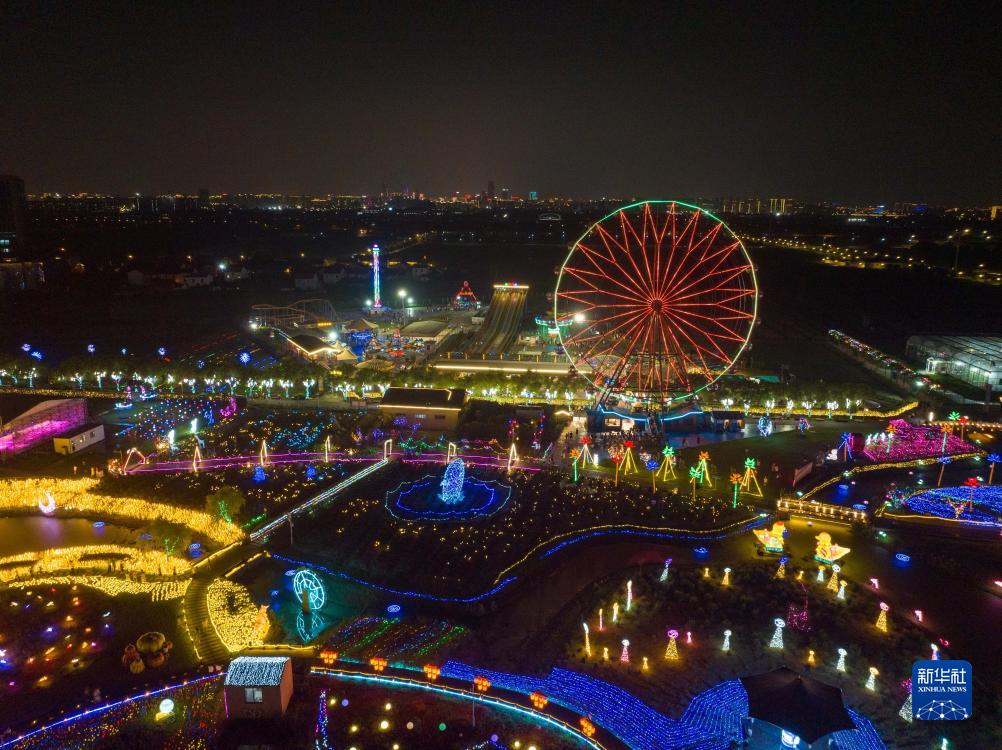 8月10日拍攝的寧波市江北區達人村景區夜景(無(wú)人機照片)。