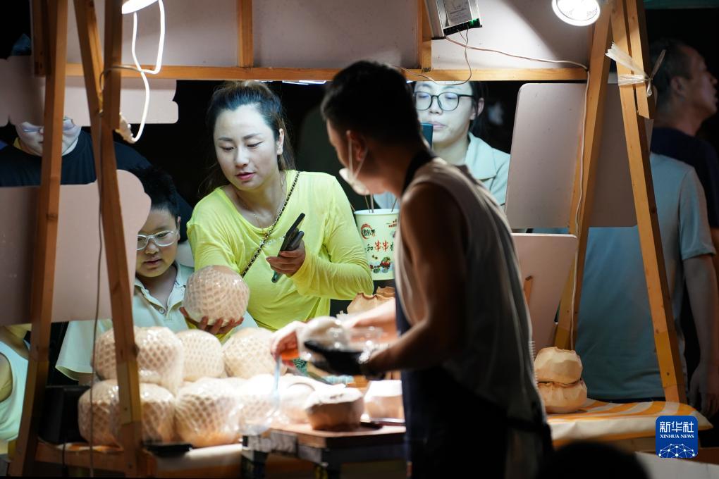 8月10日,游人在西安市浐灞生態(tài)區的后備箱集市上消費。