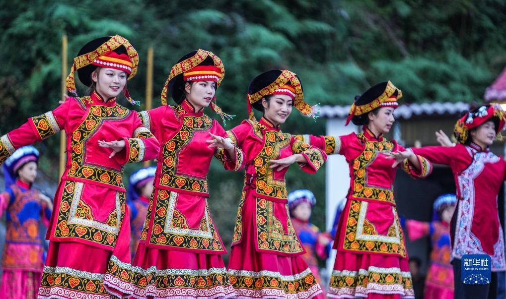 演員在威寧彝族回族苗族自治縣火把節活動(dòng)上表演撒麻舞(8月10日攝)。