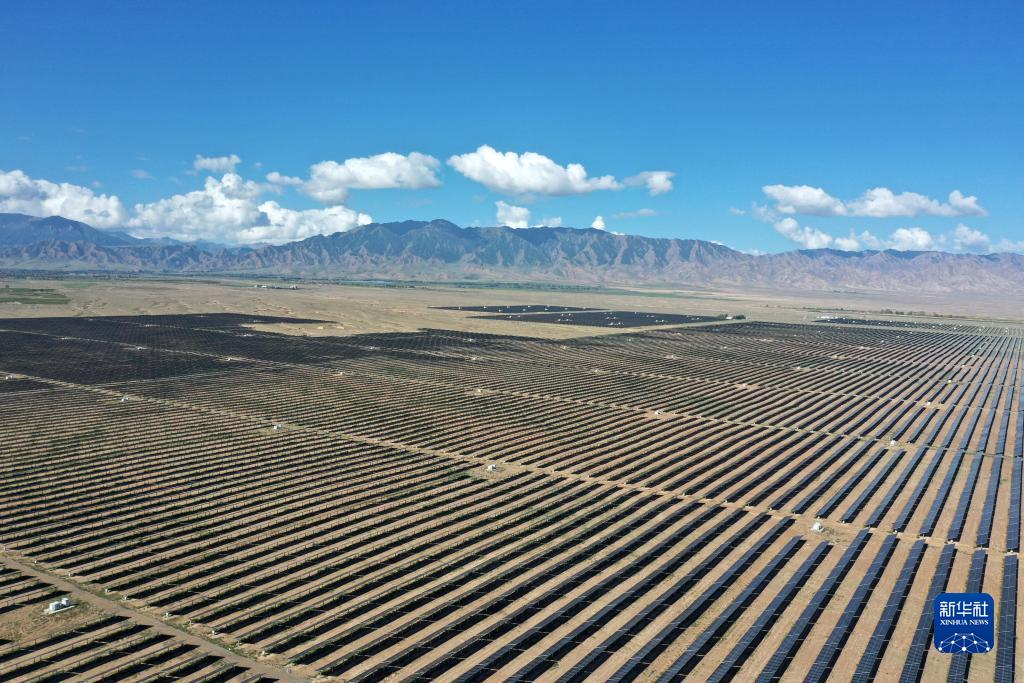 這是中國能建張掖甘州南灘30萬(wàn)千瓦光伏發(fā)電項目(8月11日攝,無(wú)人機照片)。