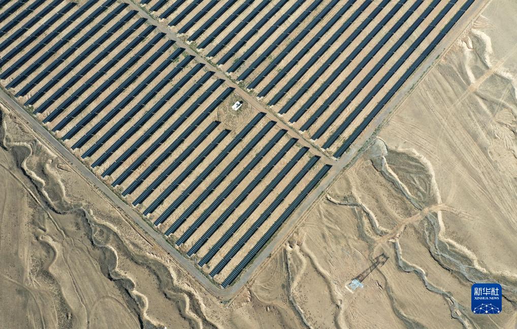 這是中國能建張掖甘州南灘30萬(wàn)千瓦光伏發(fā)電項目(8月11日攝,無(wú)人機照片)。