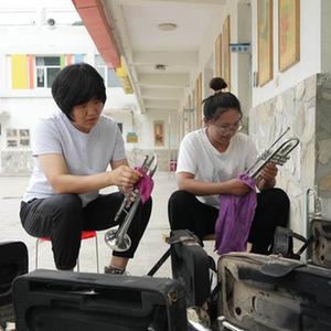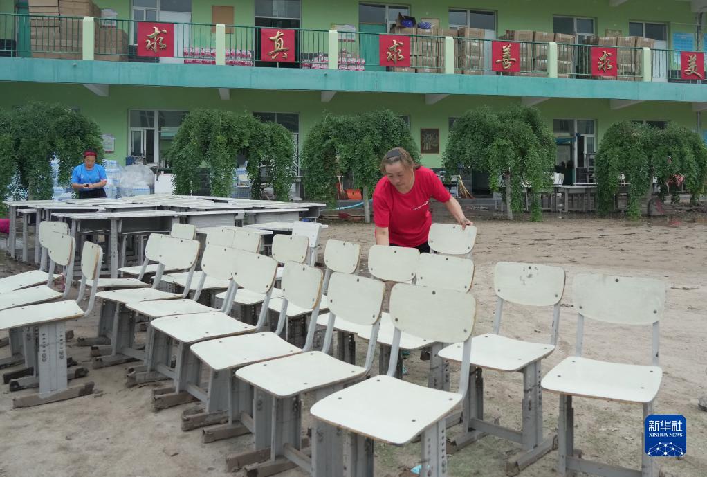 8月11日,在河北省淶水縣其中口鄉,學(xué)校老師在擦洗桌椅。