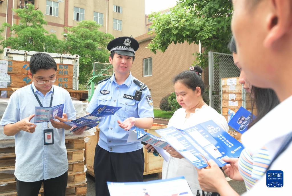 8月11日,福州市長(cháng)樂(lè )區公安局航城派出所工作人員在轄區一家公司向該公司員工宣傳防范電信詐騙的知識。