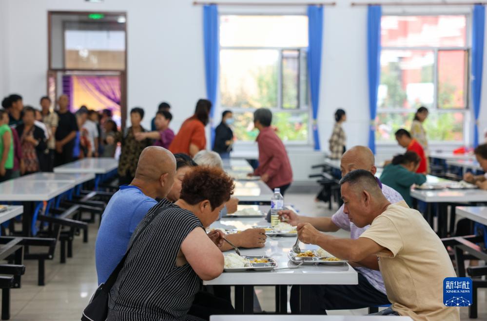 8月11日,居民在吉林省舒蘭市舒蘭三中居民安置點(diǎn)食堂吃飯。