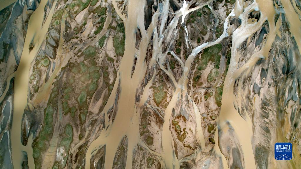 在沱沱河與當曲匯合處的囊極巴隴拍攝的辮狀河道局部(7月26日攝,無(wú)人機照片)。