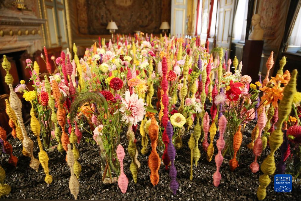 這是8月11日在比利時(shí)布魯塞爾“鮮花時(shí)光”展覽上拍攝的花藝作品。