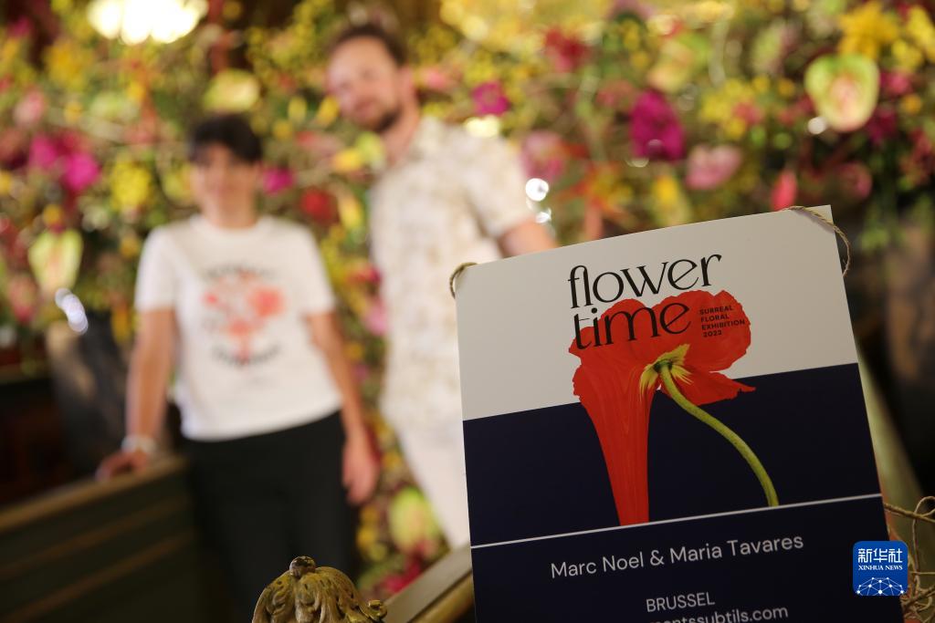 8月11日,觀(guān)眾在比利時(shí)布魯塞爾“鮮花時(shí)光”展覽上拍照。