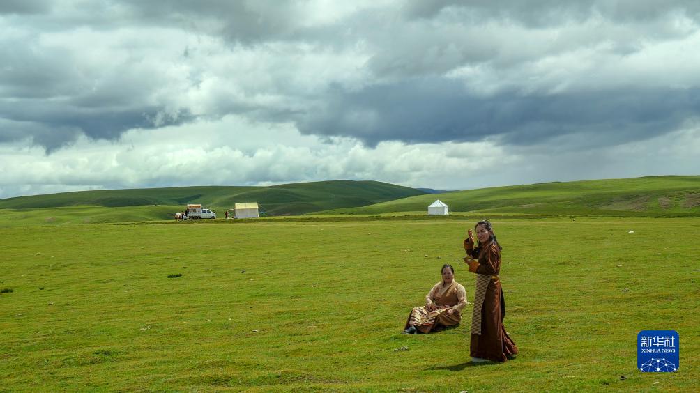 8月11日,游客在羌塘草原上賞景游樂(lè )。