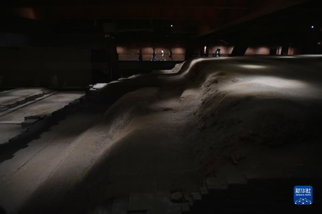 8月11日晚,游人在洛陽(yáng)應天門(mén)遺址博物館內參觀(guān)。