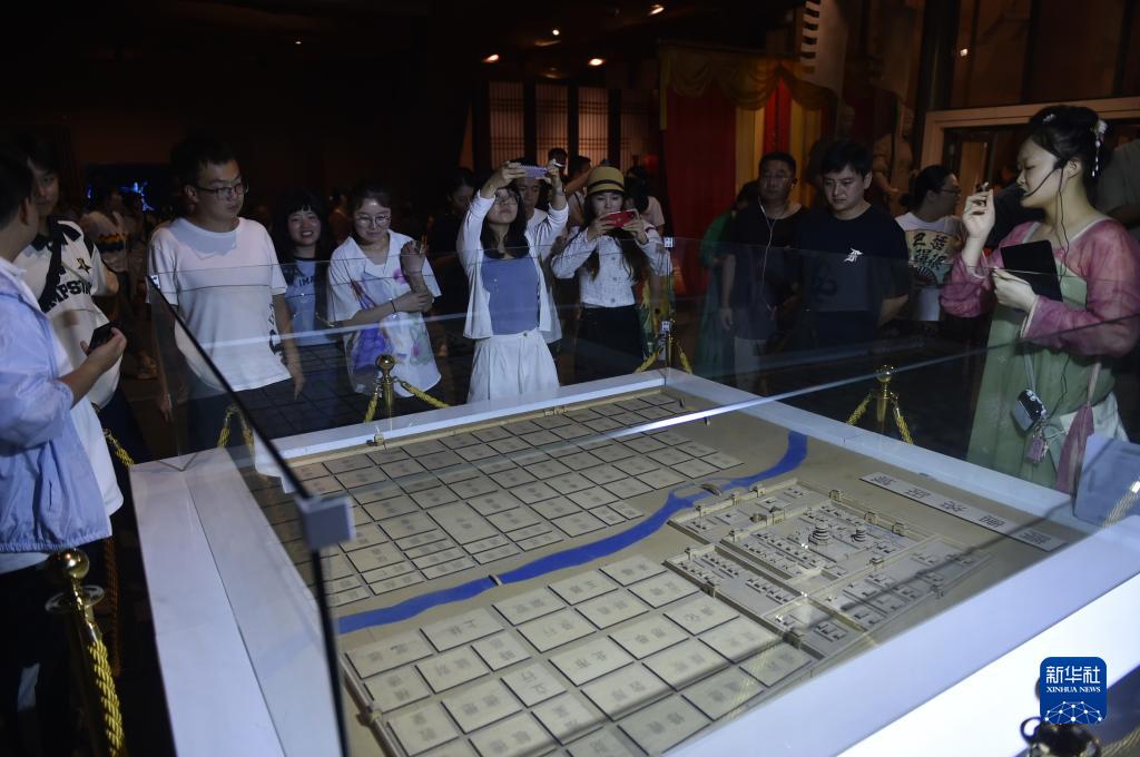 8月11日晚,游人在洛陽(yáng)應天門(mén)遺址博物館內參觀(guān)。