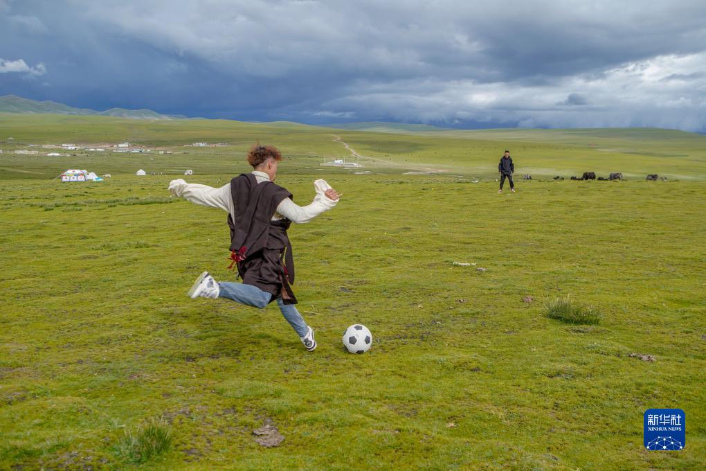 8月11日,旦增旺久和朋友在草原上踢足球。旦增旺久是次扎達兒子列熱覺(jué)旦的表哥,遠在千里之外的湖南上學(xué),但還會(huì )經(jīng)常想起“隆達熱巴”。正值暑假,回到草原的他會(huì )細心地為“隆達熱巴”梳毛,跟它說(shuō)悄悄話(huà)。