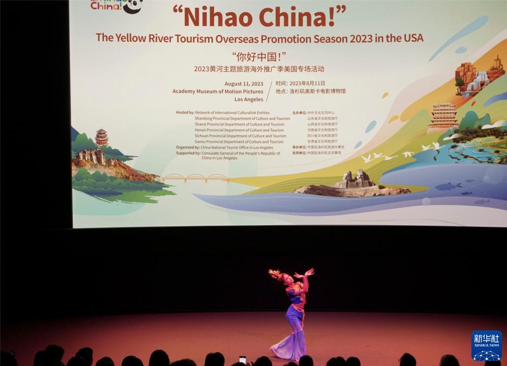 8月11日,在美國洛杉磯,演員在“你好中國!”2023黃河主題旅游海外推廣季美國專(zhuān)場(chǎng)活動(dòng)上表演中國傳統舞蹈。