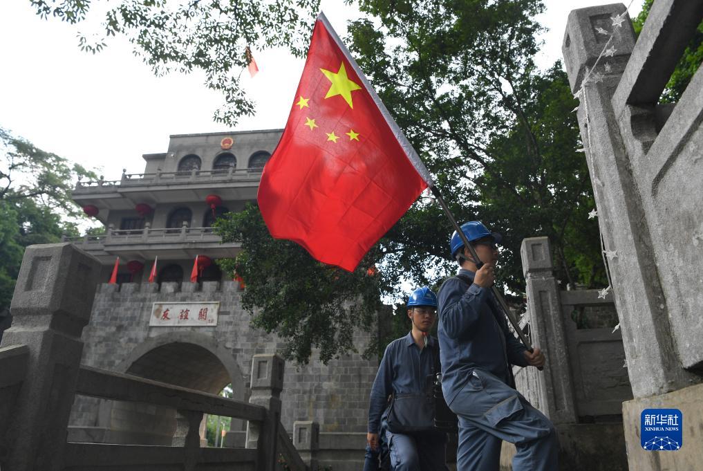 “國旗巡線(xiàn)班”在友誼關(guān)巡線(xiàn)(8月10日攝)。新華社記者 周華 攝