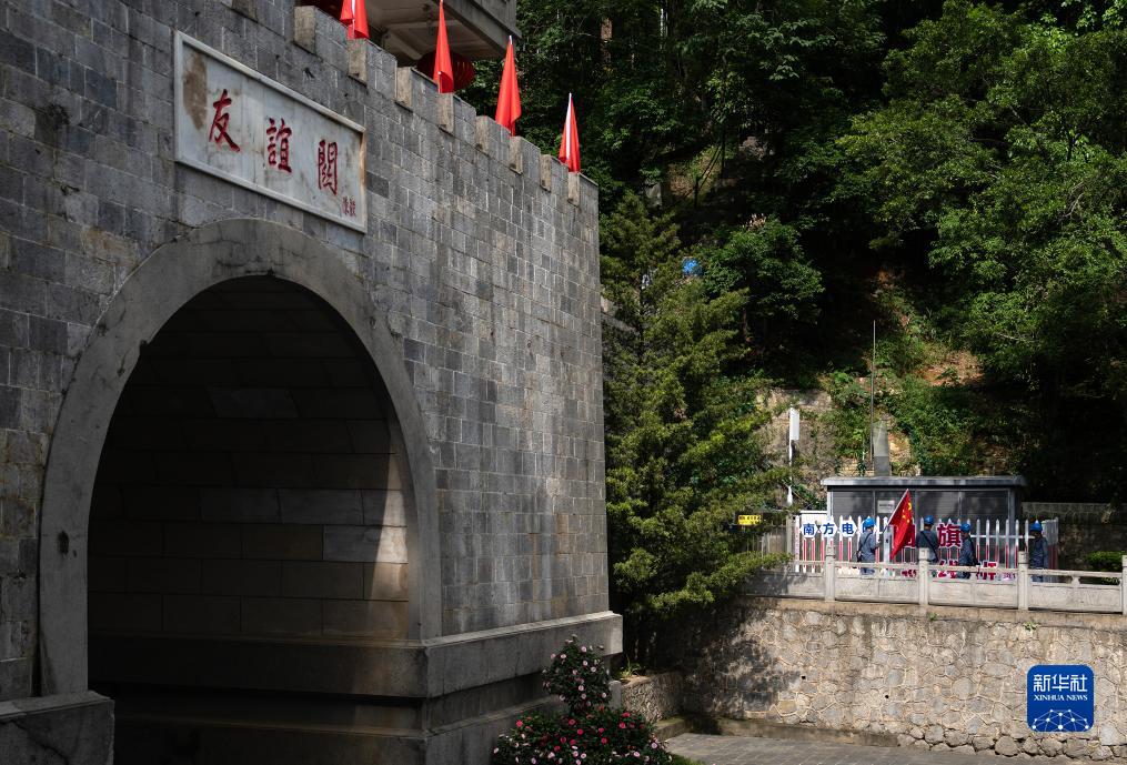 8月10日,“國旗巡線(xiàn)班”在友誼關(guān)附近巡視線(xiàn)路和設備。新華社記者 費茂華 攝