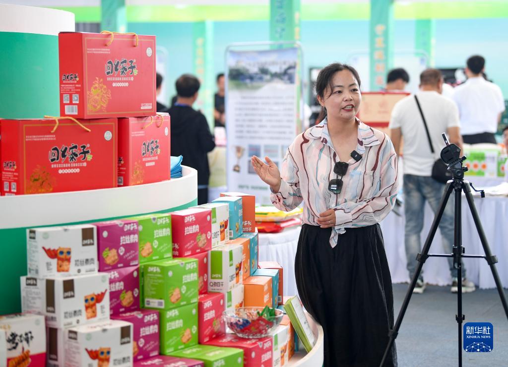 8月12日,一名網(wǎng)絡(luò )主播在展銷(xiāo)會(huì )上介紹產(chǎn)品。