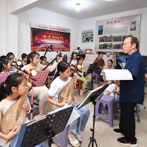 2015年,李舒尤回到家鄉枧頭洲村,發(fā)現村里的部分留守兒童因父母外出務(wù)工疏于管教十分頑皮,安全、生活、學(xué)習狀況都很令人擔憂(yōu)?!笆遣皇强梢岳梦业奶亻L(cháng),用音樂(lè )感化他們?”李舒尤想。自此,李舒尤在村里開(kāi)起了樂(lè )器公益課堂——“舒尤樂(lè )坊”,利用周末和寒暑假免費教授孩子們各類(lèi)樂(lè )器。為了吸引學(xué)生,他自費給鎮上的小學(xué)捐贈了40把二胡。8年間,公益課堂慢慢壯大,今年暑期,共有90多名學(xué)生在舒尤樂(lè )坊學(xué)習。