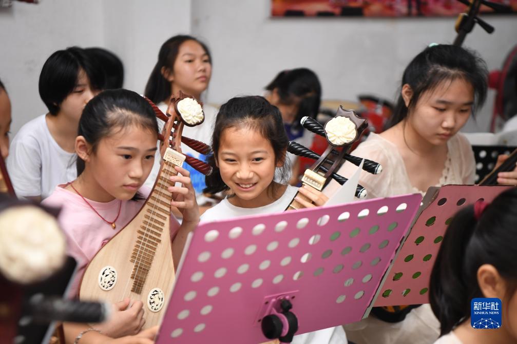 8月12日,學(xué)生們在枧頭洲村舒尤樂(lè )坊內上課。