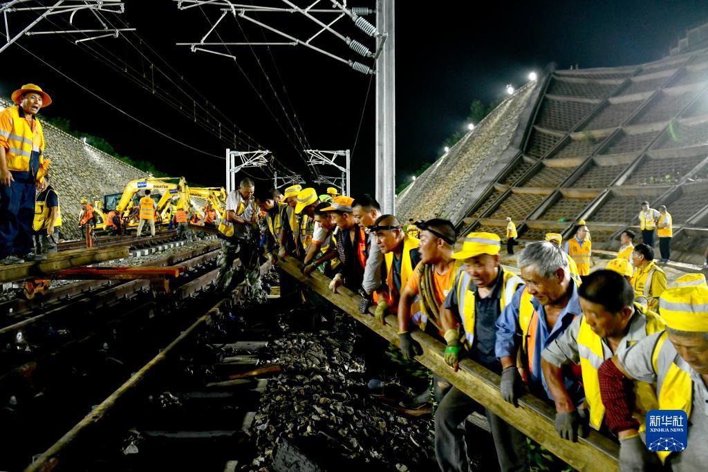 8月12日,中鐵十局的工作人員在濟鄭高鐵山東段大廟屯線(xiàn)路所42號道岔I級施工。