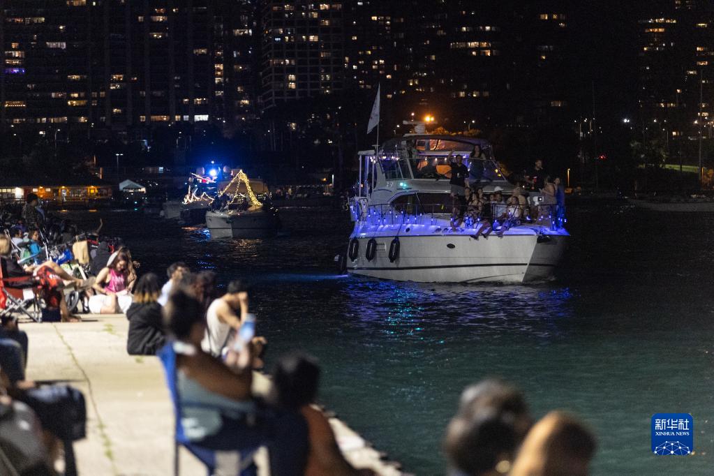 這是8月12日在芝加哥拍攝的“威尼斯游船秀”現場(chǎng)。