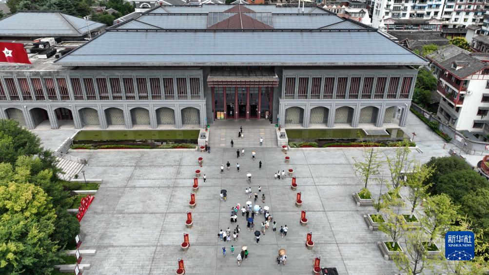 8月13日,游客在遵義會(huì )議陳列館參觀(guān)游覽(無(wú)人機照片)。