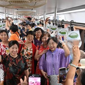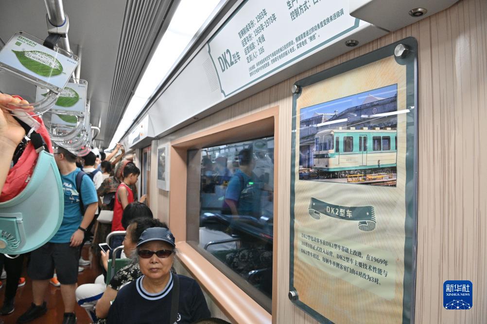 從8月8日起,北京地鐵一號線(xiàn)開(kāi)行“時(shí)光列車(chē)”,6節車(chē)廂采用不同時(shí)代涂裝風(fēng)格。特別是綠色座椅、車(chē)廂頂部風(fēng)扇等元素,帶領(lǐng)乘客瞬間“穿越”,吸引人們紛紛打卡拍照?!皶r(shí)光列車(chē)”運行時(shí)間是工作日14點(diǎn)至15點(diǎn),運行區間是地鐵古城站至地鐵復興門(mén)站。