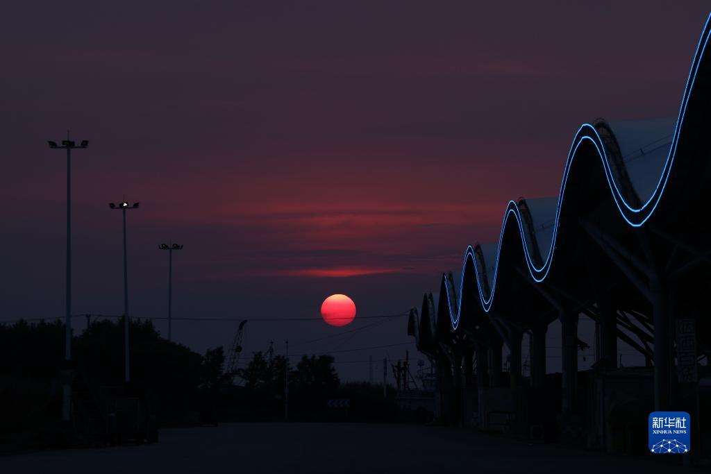 江蘇省啟東市呂四漁港日落景色(2023年7月24日攝)。